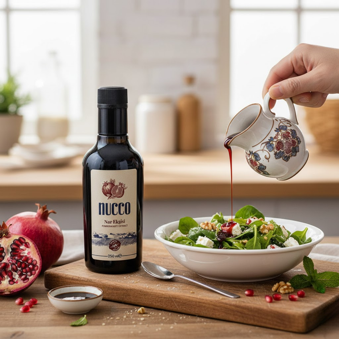 Salatalardan mezelere, et yemeklerinden soslara kadar her tarifte fark yaratın. NUCCO’nun yüksek gövdeli yapısı ve dengeli asiditesi ile gerçek nar ekşisinin farkını hissedin.